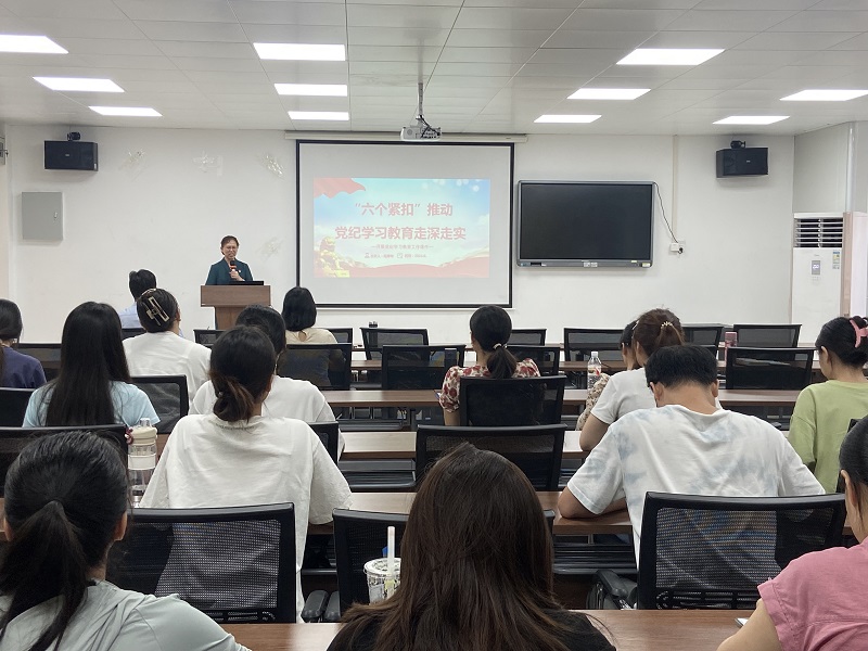 教师党支部书记陆青梅老师主讲《“六个紧扣”推动党纪学习教育走深走实》党纪学习教育专题党课。指出要深入落实《关于在全党开展党纪学习教育的通知》要求,切实把思想和行动统一到党中央决策部署上来,做到学纪、知纪、明纪、守纪,把遵规守纪刻印在心,内化为言行准则,进一步增强政治定力、纪律定力、道德定力、抵腐定力,始终做到忠诚干净担当。