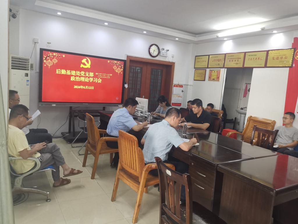 6月12日下午,后勤基建处党支部在党员活动室开展“三三三”政治理论学习,会议由支部书记黄敬文同志主持,后勤基建处党支部全体党员参加会议。