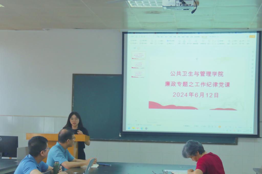 6月12日下午,公共卫生与管理学院党委书记李常应给教师第一党支部和第二党支部全体党员教师上专题党课。