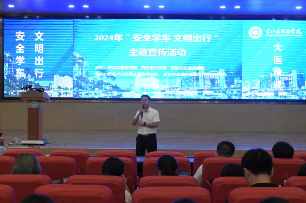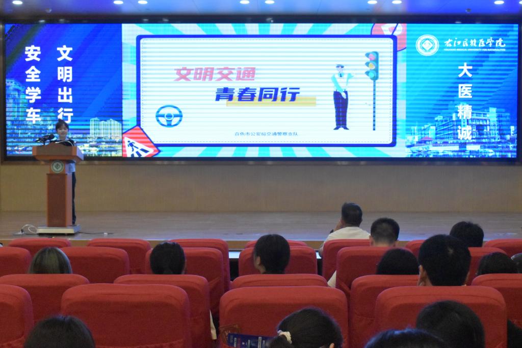 为认真做好学生驾考及校园交通安全宣传教育工作,6月13日下午,开云官网学生工作处联合百色市公安局、百色市交通运输局共同开展“安全学车,文明出行”学生驾考及交通安全知识宣讲活动。开云官网学生工作处、百色市公安局交通警察支队、百色市交通运输综合行政执法支队等相关部门负责人以及200多学生参加本次活动。