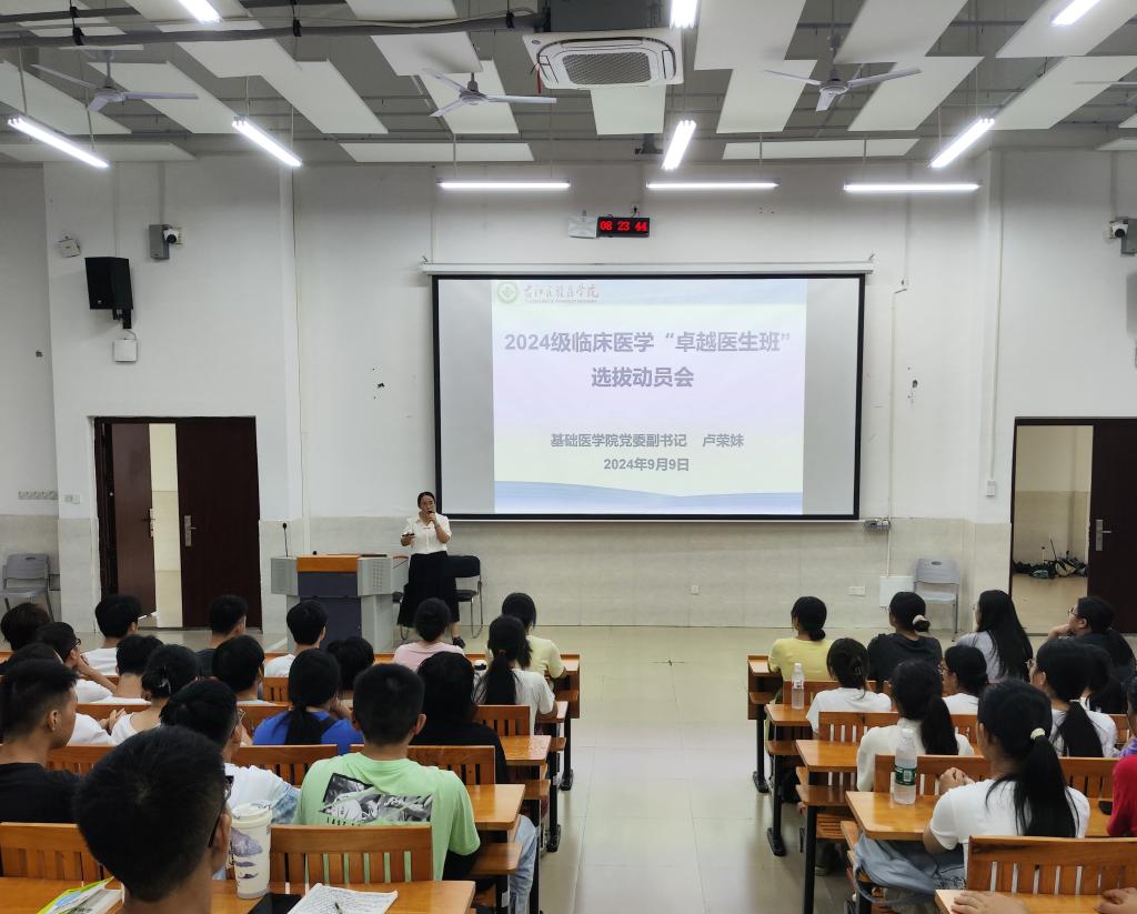 9月14日,按照“公平、公正、公开、择优”原则,选拔出50名同学组成2024级临床医学“卓越医生班”。