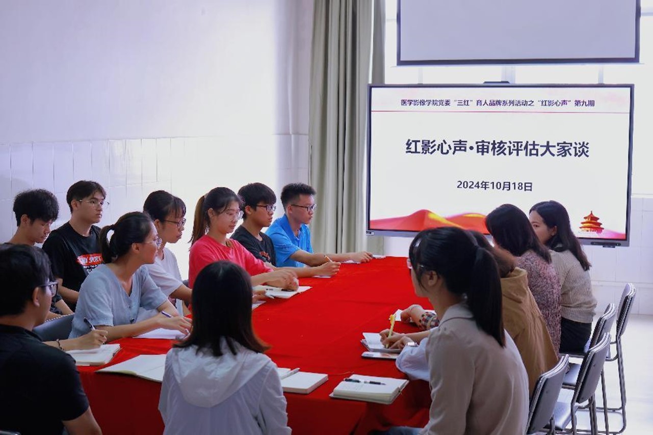 10月18日下午,医学影像学院在百城校区6栋607党员活动室举办第九期“红影心声”师生面对面交流活动。医学影像学院党委副书记黄春苗,全体辅导员、各班班长以及纪律委员参加,活动由学生科科长卢小新主持。