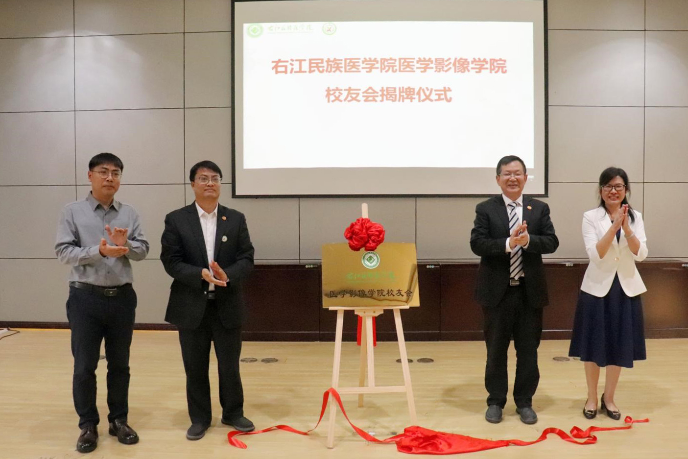 李雪斌、李丹、邓益斌及校友会代表林益良共同为医学影像学院校友会成立揭牌。学校党委副书记、校长李雪斌为学院校友会名誉会长李丹同志、会长邓益斌同志颁发聘书;李丹同志为学院校友会常务副会长、名誉副会长、副会长、秘书长、副秘书长、顾问员颁发聘书;邓益斌同志为学院校友会常务理事颁发聘书。