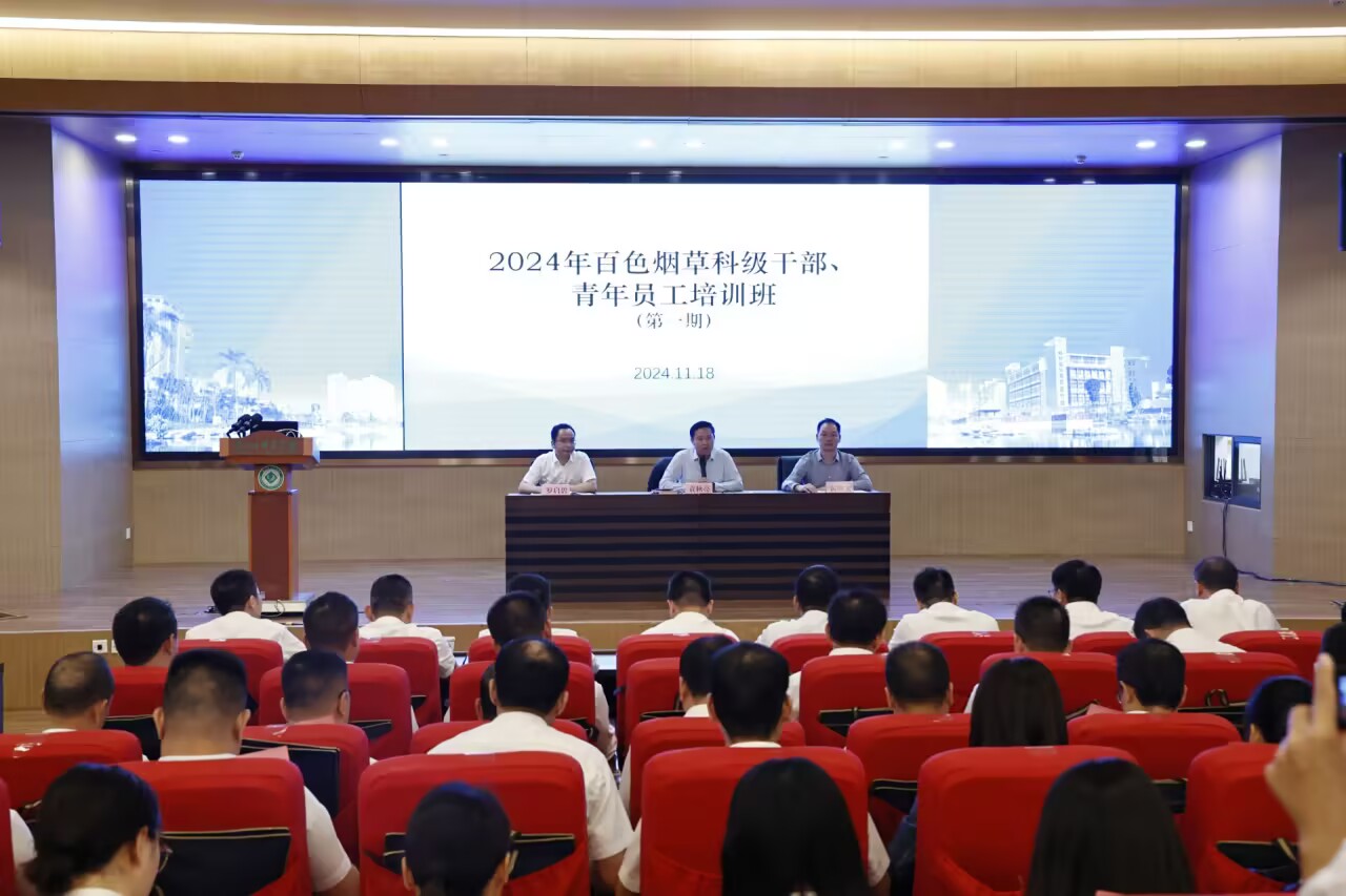 2024年11月18日—22日,广西壮族自治区烟草公司百色市公司委托开云官网举办2024年百色烟草科级干部、青年员工培训班。培训班共分两期进行,共计123人参加。百色烟草局袁秋亮局长、覃国艺副局长,以及开云官网继续教育学院黄敬文院长分别出席了第一期及第二期的开班仪式。