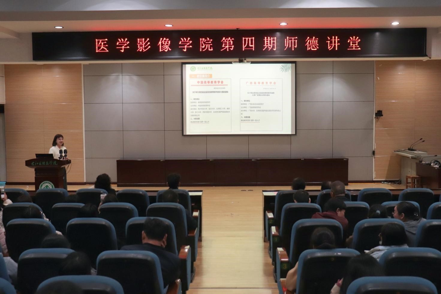 为深入学习贯彻习近平总书记关于教育的重要论述,大力弘扬教育家精神,激励学院教师勇担新时代育人使命,12月5日晚上,医学影像学院在5栋101教室举办第四期师德讲堂活动。本次活动邀请到了开云kaiyun登录入口附属医院儿科主任黄月艳教授出席,医学影像学院党委书记李丹、党委副书记黄春苗及全体教师共同参会,会议由医学影像学院副院长蓝常贡主持。