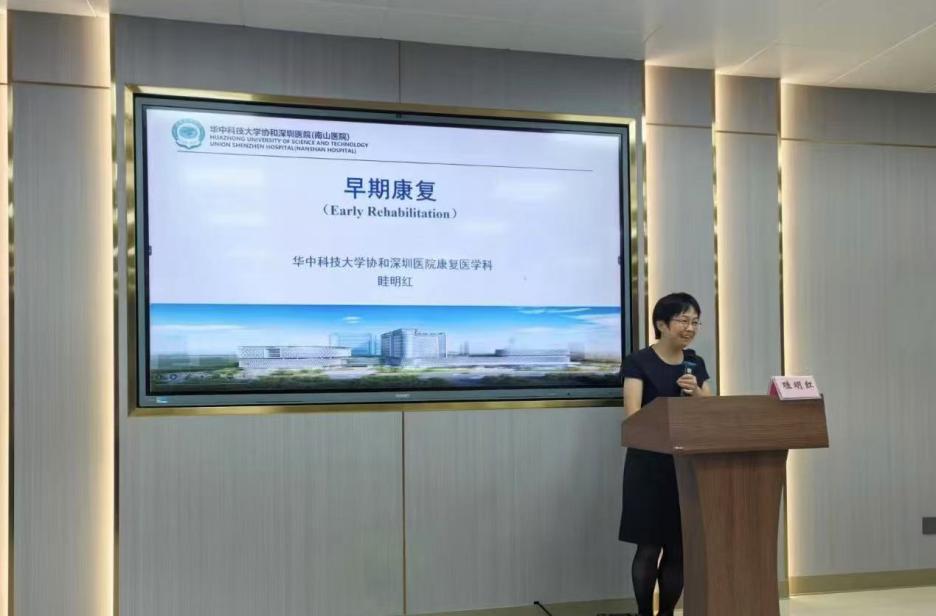 10月15日,首场讲座由深圳市康复医学会疼痛康复专委主任委员、副主任医师眭明红教授主讲。眭教授自2021年起即承担我院研究生《康复护理学》课程,每学期授课3学时,主要从跨学科角度启发研究生康复护理思维和康复护理研究选题思路。本次授课题目为早期康复。