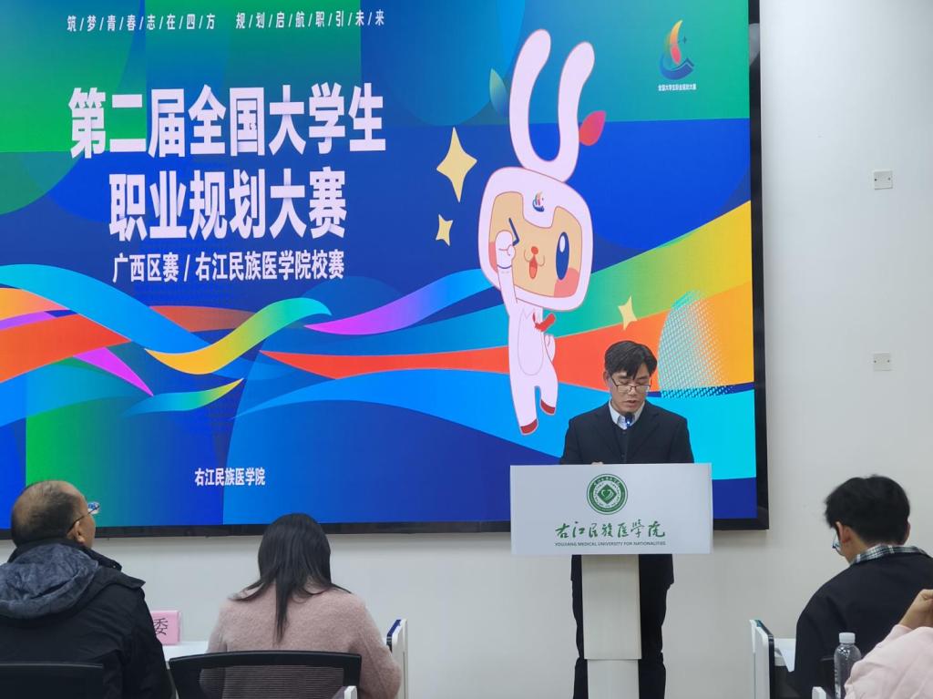 为了加强大学生职业生涯教育与就业指导,增强大学生职业规划意识,指导大学生及早做好就业准备,以择业新观念打开就业新天地,促进大学生高质量充分就业。教育部于今年举办第二届全国大学生职业规划大赛。12月18日下午,开云官网招生与就业指导服务中心与校团委联合举办以“筑梦青春志在四方,规划启航职引未来”为主题的开云kaiyun登录入口2024年大学生职业规划大赛暨第二届全国大学生职业规划大赛校级选拔赛,活动分别在百城校区国际会议中心二楼学术报告厅和百东校区就业创业中心路演学术厅进行。大赛由招生与就业指导服务中心主任陆小曲、副主任韦星、副主任黄锋,校团委副书记(主持全面工作)何彦妮、副书记韦金凌,人事处人才科科长谭琳,学工处学生资助管理办公室主任韦燕萍,招生与就业指导服务中心就业科科长李婕、办公室主任李端阳,马克思主义学院赵玉鹏教授出席并担任评委,各二级学院教师和学生代表共同参与。