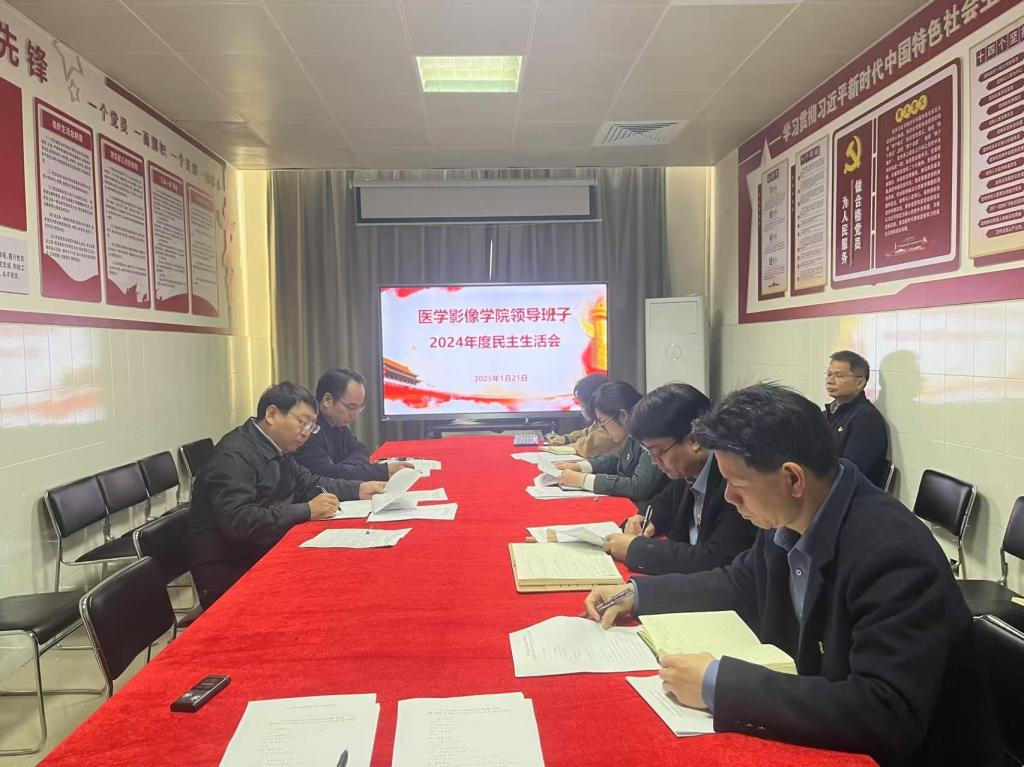 1月21日,医学影像学院领导班子在百城校区6栋6楼党员活动室召开2024年度民主生活会。学校党委常委、副校长王俊利到会指导。民主生活会由学院党委书记李丹主持,党支部书记代表、纪委委员代表列席会议。