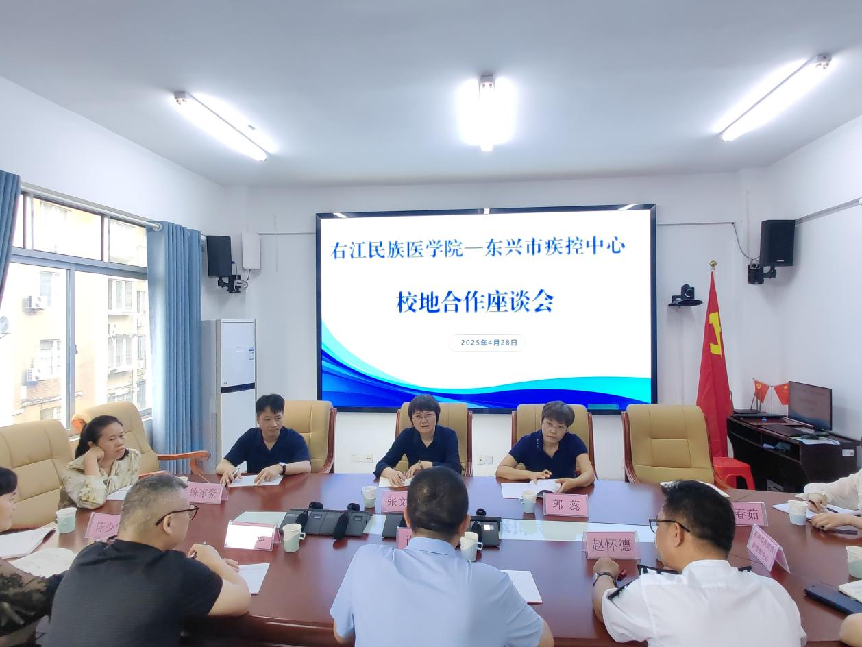 4月28日上午,开云kaiyun登录入口公共卫生学院党委书记张文玲、院长郭蕊、学科建设科、教学科一行4人赴东兴市疾病预防控制中心,围绕校地合作开展专题座谈交流,并实地参观实验室。东兴市疾病预防控制中心主任许瑞伟、副主任李志强、赵怀德、陈少华及相关科室负责人参加会议。