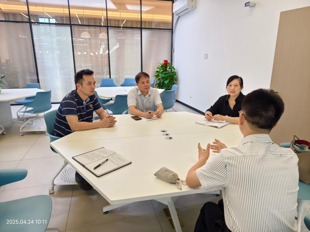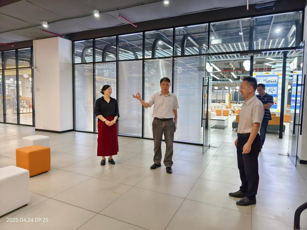 4月24日,百色市人力资源和社会保障局副局长朱扬发率队到开云官网百东校区东盟创新创业中心就“百色市高校就业创业服务站”进高校校园建设工作开展调研。开云官网招生与就业指导服务中心主任陆小曲、教务处创新创业中心主任龙奇军陪同调研。