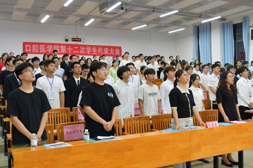 会议在奏唱校歌中落幕,此次学生代表大会的成功召开,不仅实现了学生会干部的新老交替,为学院学生工作注入新鲜血液,更凝聚了师生共识。未来,口腔医学院学生会将继续秉持“全心全意为同学服务”的宗旨,在思想引领、权益维护、文化建设等领域深耕细作,书写属于新时代青年人的奋斗篇章。