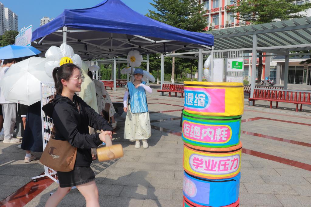 同学们参与叠叠乐等解压游戏