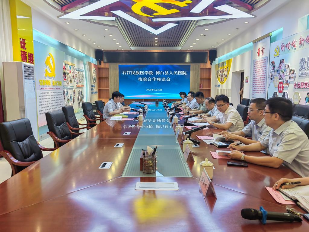随后,双方召开了校院合作座谈会。博白县人民政府罗建勇副县长出席并参此次会议。会上,双方就合作相关问题进行了深入的交流与探讨,初步达成合作共识。未来,双方将在研究生联合培养、师资培训、科研合作等多个领域展开紧密合作,携手打造高质量医学人才培养平台。