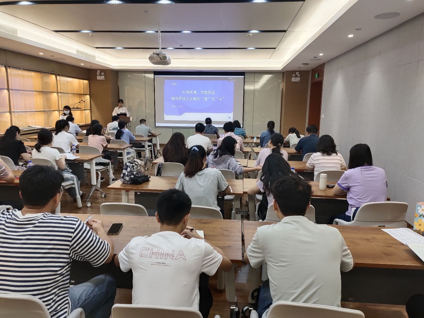 在交流环节,参训辅导员踊跃提问,就备赛难点、学生日常管理技巧等问题与班宁老师展开热烈讨论。班宁老师通过具体实例,为辅导员们提供了可操作性的建议,现场氛围活跃。老师们纷纷表示,此次培训内容紧贴实际,既有理论高度又有实践指导意义,为今后参赛和日常工作提供了新思路。
