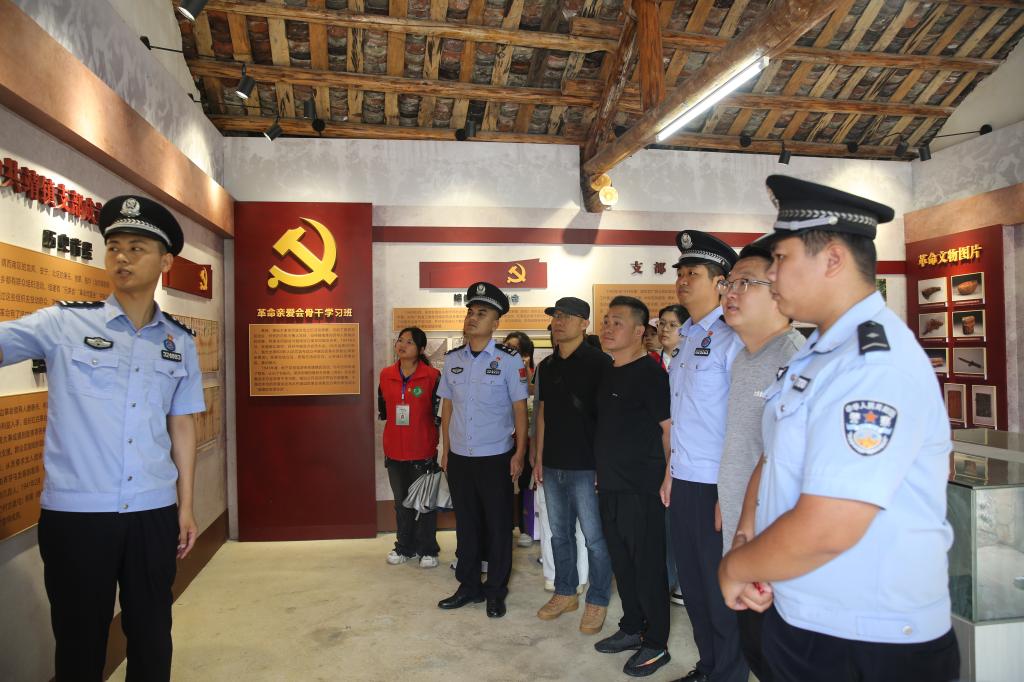 在靖西市吞盘乡靖镇区第一党支部旧址,服务团成员们驻足凝视,泛黄的史料、斑驳的照片诉说着戍边人的英勇与奉献。吞盘边境派出所民警深情讲述着无名碑下长眠的先辈故事,他们虽无名,却以生命捍卫着祖国的每一寸土地。