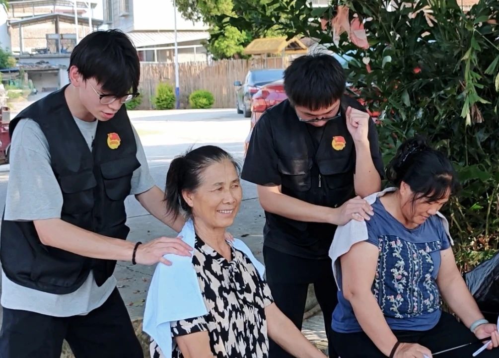 知识传递不止于课堂。讲堂之外,实践团还贴心设立了健康咨询服务台,将科普的“最后一公里”落到实处。队员们提供免费的血压、血糖测量服务,并根据测量结果和村民个体情况,进行一对一的个性化健康指导,耐心解答各种疑问。更是发挥专业所长,为有需要的村民提供免费的手法按摩服务,缓解劳作的疲惫。这些看得见、摸得着的贴心服务,不仅有效提升了村民对自身健康状况的认知,更极大地增强了他们的健康自我管理意识和能力,让健康理念从“知道”走向“做到”。