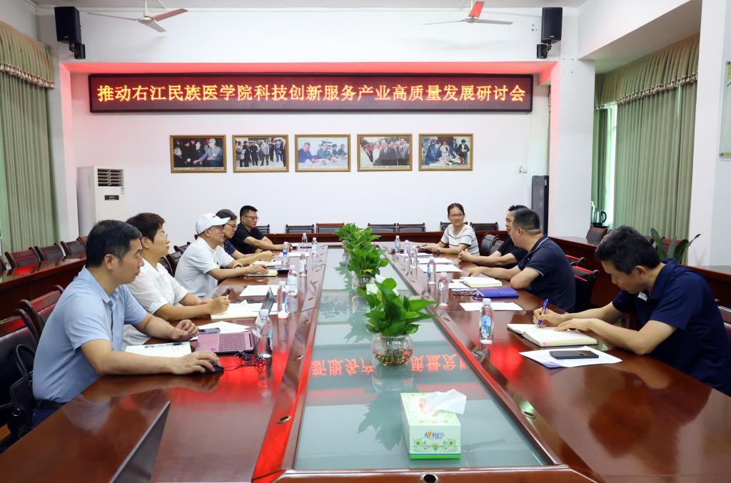 会议传达了全区高校科技创新服务企业产业高质量发展座谈会的会议精神。与会人员围绕民族医药、长寿康养、人工智能等前沿领域展开交流与讨论,为校企产学研融合提供新思路。