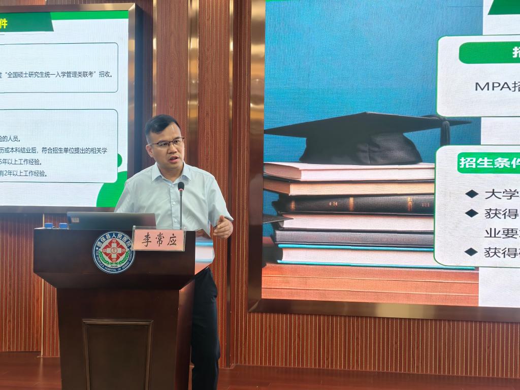 在宣讲会上,李常应强调,在当今国家治理体系和治理能力现代化加速推进的时代背景下,培养兼具国际视野、战略思维与卓越执行力的高层次公共管理人才,是时代赋予高校的重要使命。他从学校和学院基本情况、公共管理专业硕士(MPA)简介和招生政策三个方面进行全面而深入的解读,重点强调培养方向、招生类型和条件、考试科目和分数线、享受少数民族政策条件、课程设置、毕业条件等内容。