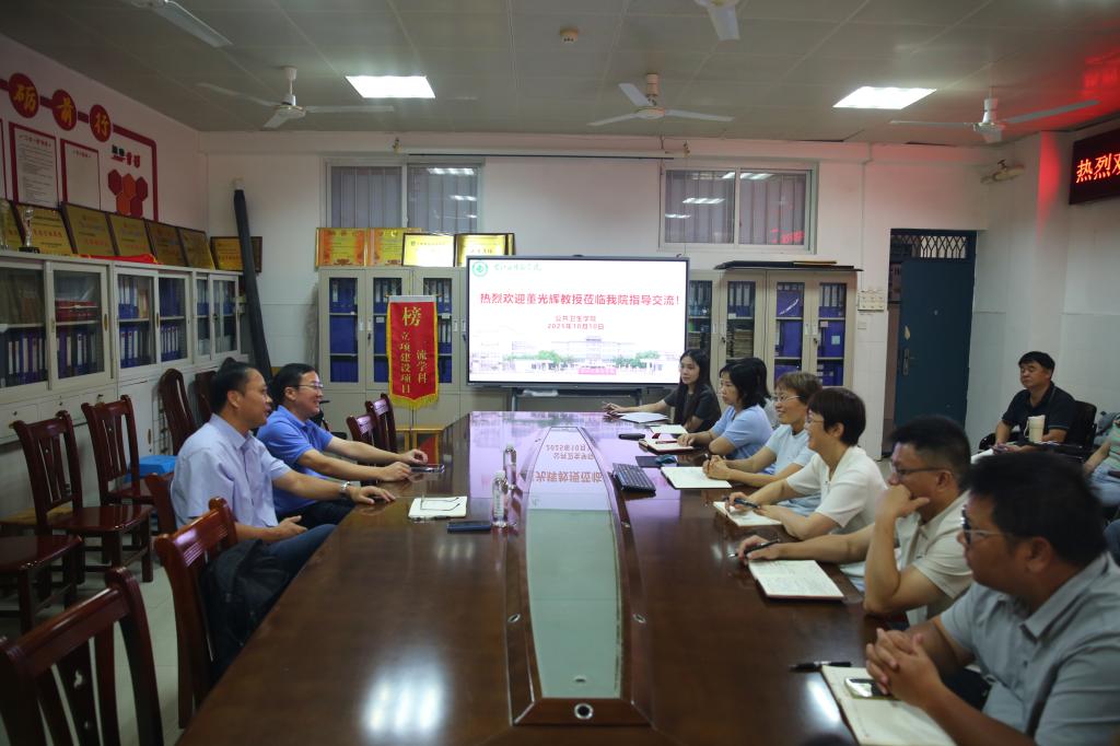 10月10日上午,中山大学公共卫生学院副院长董光辉教授莅临公共卫生学院指导交流。学校党委常委、副校长谭盛葵出席并主持座谈会,公共卫生学院领导班子、教师代表参加座谈会。