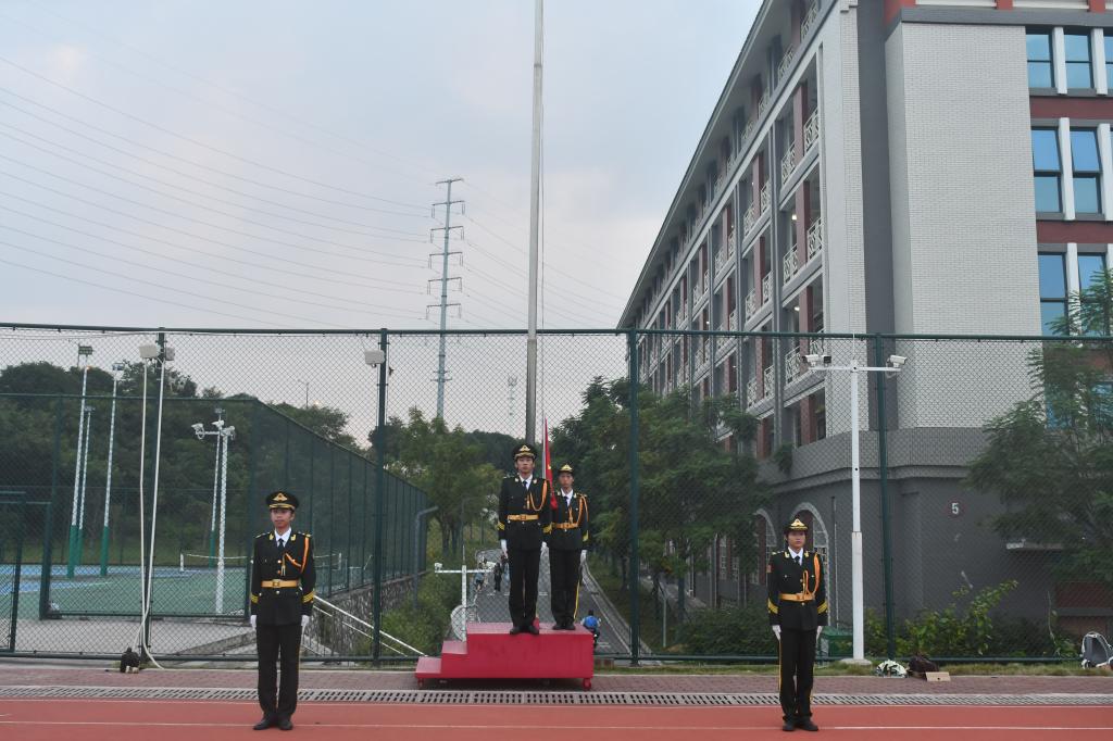 清晨,全体师生整齐列队,肃立于国旗台前。7时整,升旗仪式正式开始。护旗手步伐铿锵、身姿挺拔,庄严护送五星红旗至旗台。在雄壮的《义勇军进行曲》中,鲜艳的五星红旗冉冉升起,全体师生行注目礼,心中激荡着对祖国的热爱与对民族复兴的坚定信念。