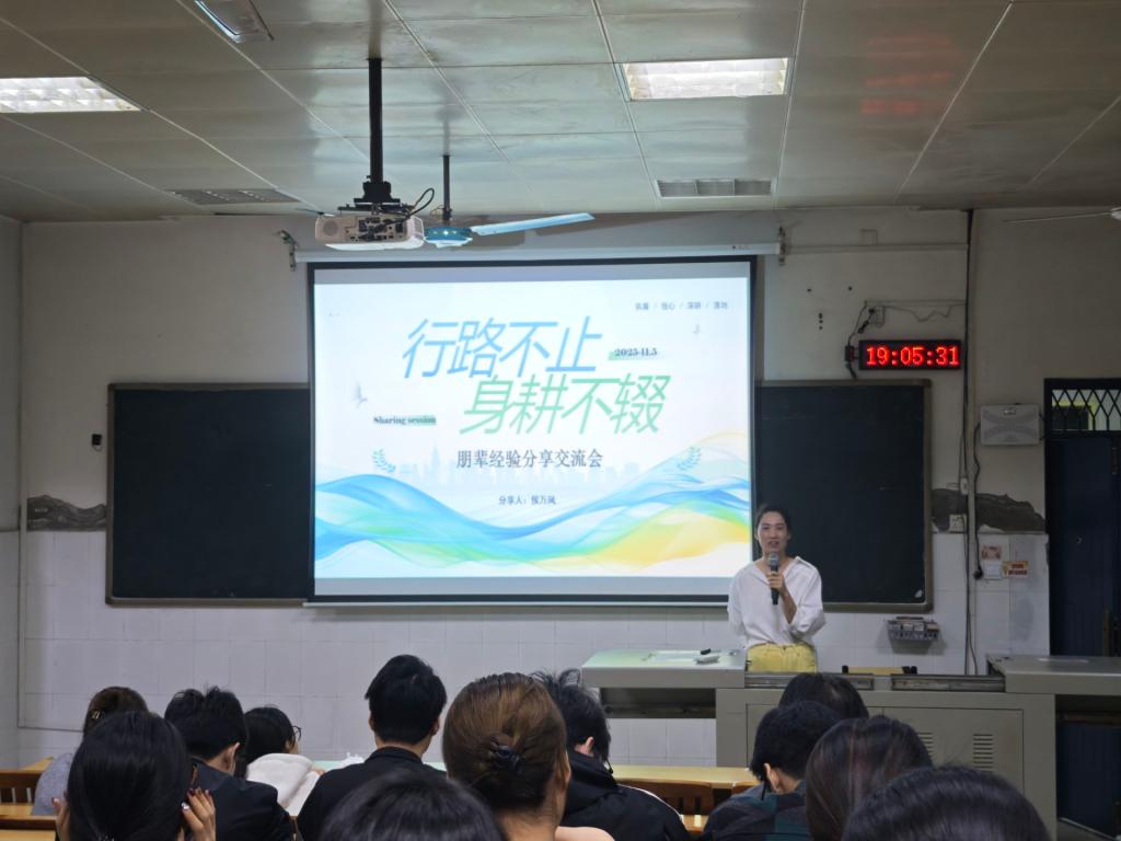 为帮助学生明确职业发展方向、科学树立职业发展目标、合理规划学业与职业选择路径,2025年11月5日晚上,语言文化学院在六栋教学楼109教室成功举办“校友领航,青春共进”校友报告会。本次报告会特邀语言文化学院2020届英语专业本科毕业生侯万凤校友主讲,语言文化学院2026届本科毕业生及各年级学生代表参加报告会。