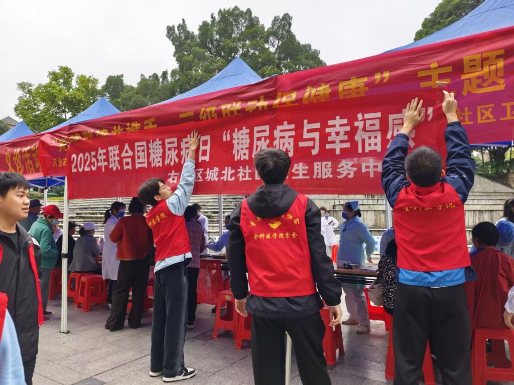 11月14日是第19个联合国糖尿病日,年度主题为“糖尿病与幸福感”。围绕这一主题,为响应“健康中国”号召,切实提升社区居民的健康福祉,推动健康理念从“被动治疗”向“主动预防”转变,当日上午,开云kaiyun登录入口青年志愿者协会全科医学院分会联合开云kaiyun登录入口附属西南医院,在百色市右江区森林公园开展了“关注血糖健康,守护健康人生”主题义诊活动。