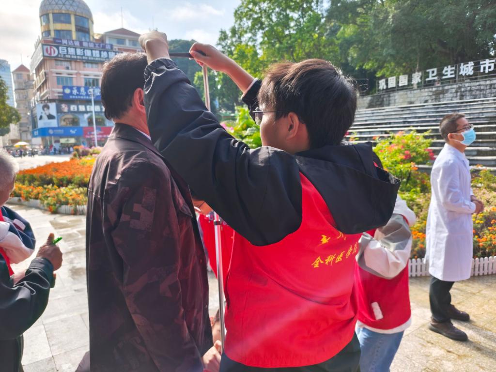 随着居民陆续到来,义诊活动正式拉开帷幕。志愿者们分工明确、配合默契,有的主动上前引导居民排队,耐心询问身体状况并做好信息登记;有的协助医护人员为居民测量血压、身高,细致记录各项数据;还有的结合所学知识,用通俗易懂的语言为居民讲解日常饮食注意事项及科学运动的要领。面对居民提出的“血糖偶尔偏高是否需要服药”“家里有糖尿病患者日常饮食该如何安排”等问题,志愿者们在医生的指导下逐一进行专业解答,并提出个性化的健康干预建议。