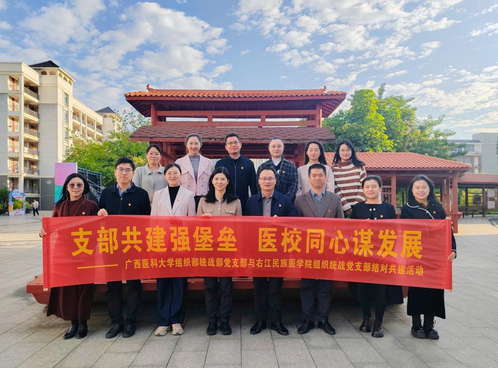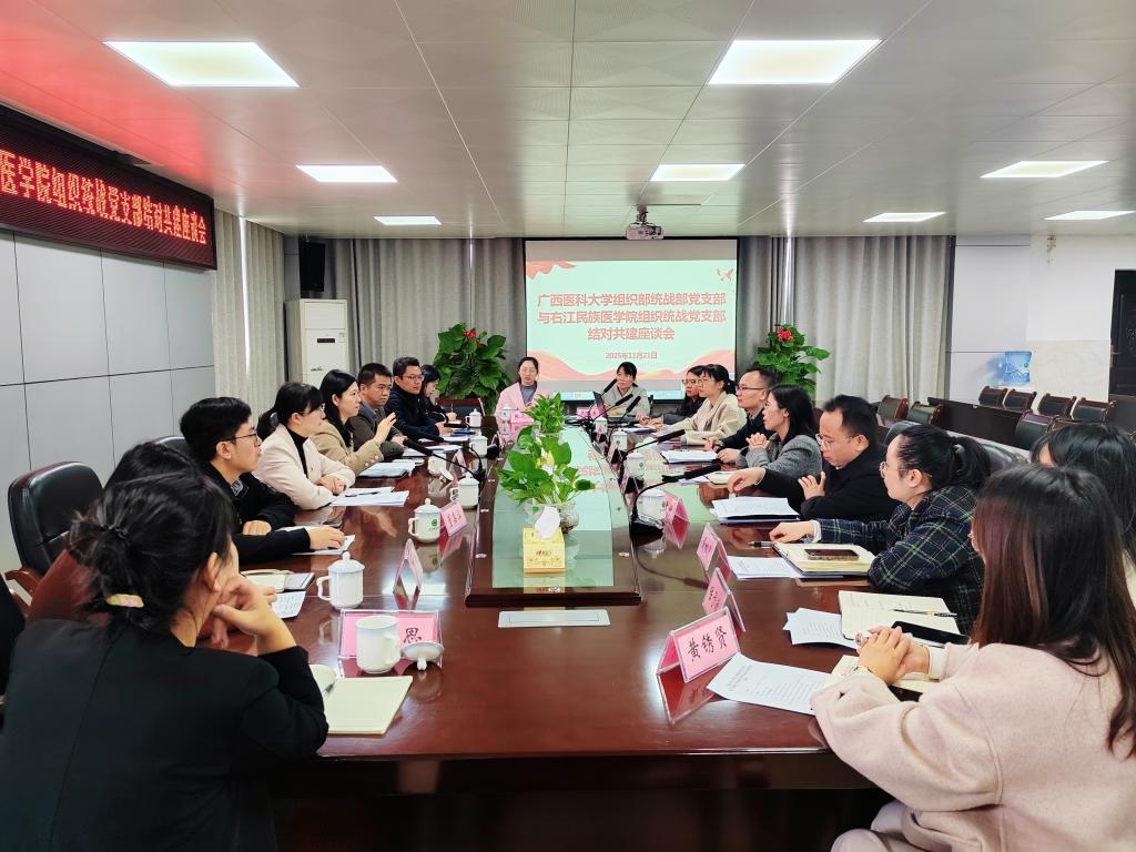 广西医科大学组织部统战部党支部与开云官网组织统战党支部召开结对共建座谈会。