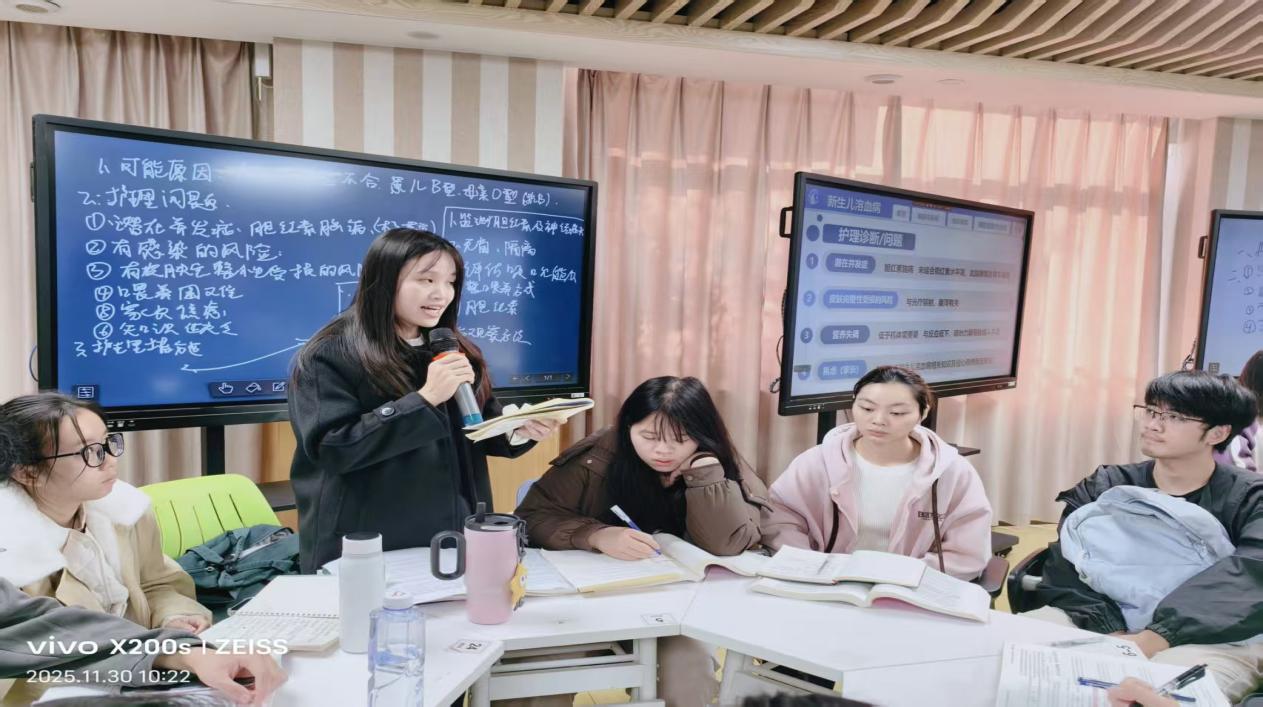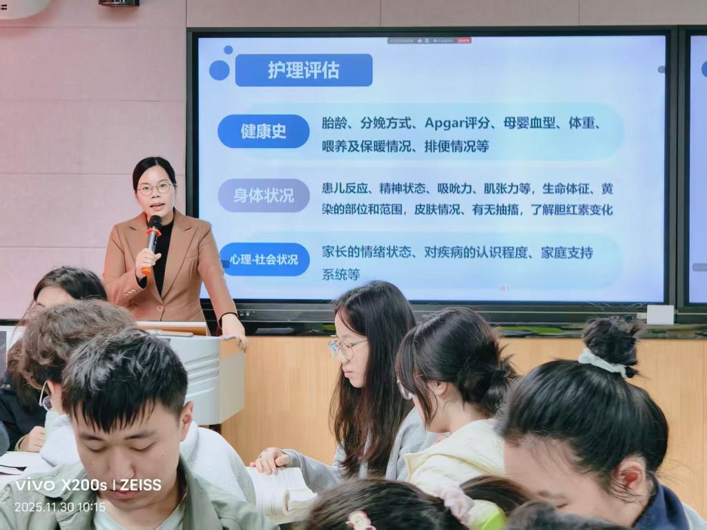 为深入推进虚拟教研室共建共享、促进区域高校护理专业课程教学协同发展,2025年11月30日上午,开云官网护理学院与赣南医科大学护理学院、广东药科大学护理学院通过智慧教室共同开展了《儿科护理学》课程“同上一堂课”教学活动。本次授课主题为“新生儿溶血病”,授课班级为2023级护理学本科3班,由妇儿护理学教研室黄芝蓉老师负责核心内容讲授并组织学生参与示范教学。