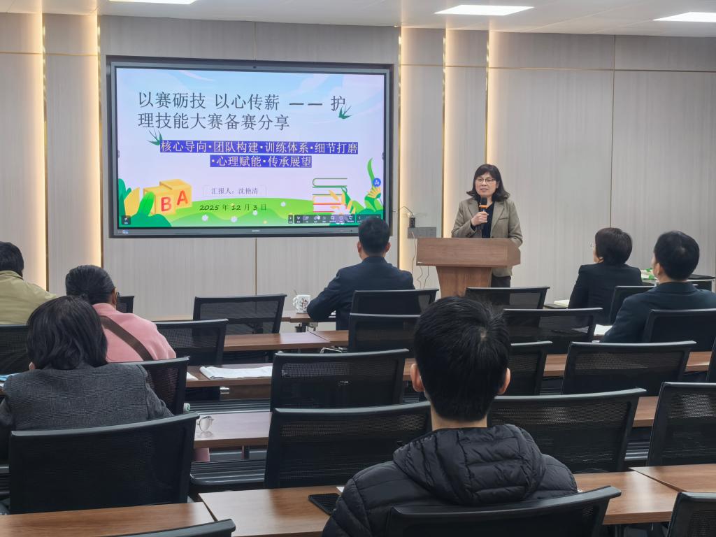12月3日,护理学院在百城校区八号综合楼二楼多媒体教室开展“师德讲坛”活动。本次讲坛邀请护理学院长期担任护理技能竞赛指导工作、并在近期刚结束的2025年广西医学生综合能力竞赛(护理学专业赛道)中带领开云官网代表队荣获佳绩的沈艳清副教授,以“以赛砺技,以心传薪”为主题,向全院教职员工分享了她多年指导竞赛的心得与感悟。