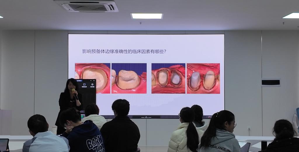 企业端实时分享质检评估表、边缘密合度、修复体美学设计实操数据,直观呈现产业端技术标准,让学生在“观摩学习—实操体验—问题反馈”的闭环中深化认知,通过深入了解一线义齿加工实际需求,从而反哺临床设计与临床技能提升。参与学生普遍认为,本次课程生动有趣,针对性强、启发面广,收获颇丰。