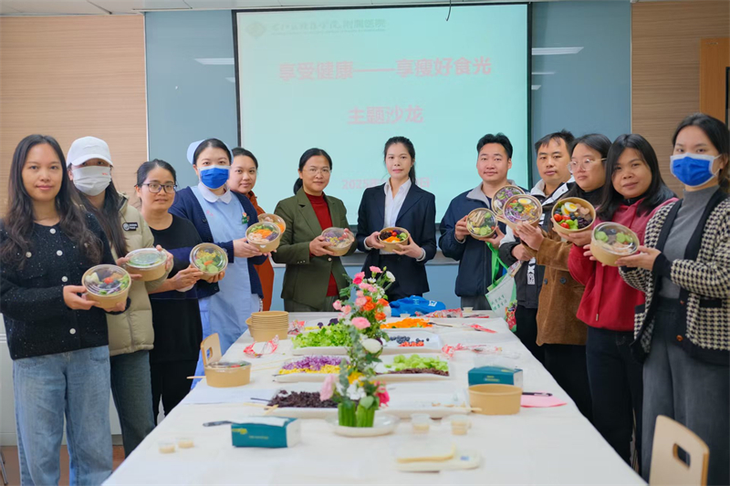 竞赛期间开展了营养课堂、运动课堂等主题工作坊,特别设置“健康管理社群”机制,由减重专科护士担任群主定期发布科普内容,组建“健康伙伴”小组鼓励同伴监督。11月30日举办的“享瘦好食光”主题沙龙中,临床营养师现场指导低卡高蛋白食材搭配,参赛职工可亲手制作专属健康餐,实现“学完即用”的实操目标。