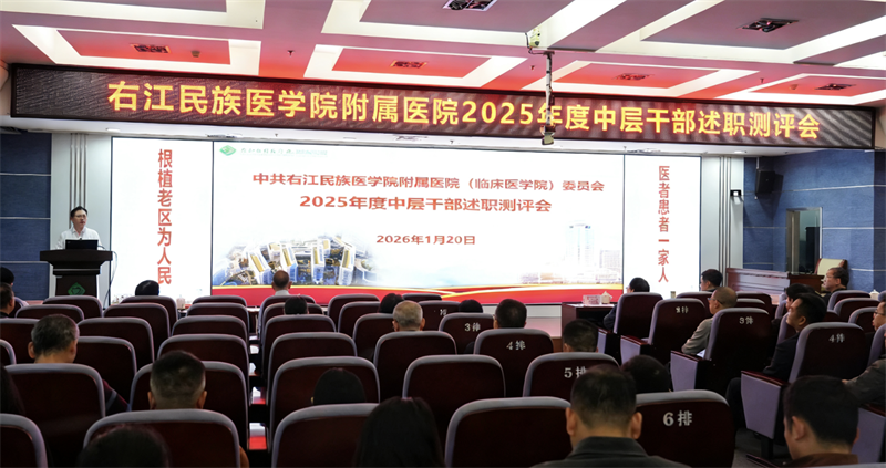 1月20日,临床医学院(附属医院)2025年度中层干部述职考核测评会在外科五楼多功能厅召开。会议全面复盘年度工作成效,部署2026年工作规划,通过述职考评锻造过硬中层队伍,为医院高质量发展赋能。全体院领导、各科室负责人及党支部书记参会。