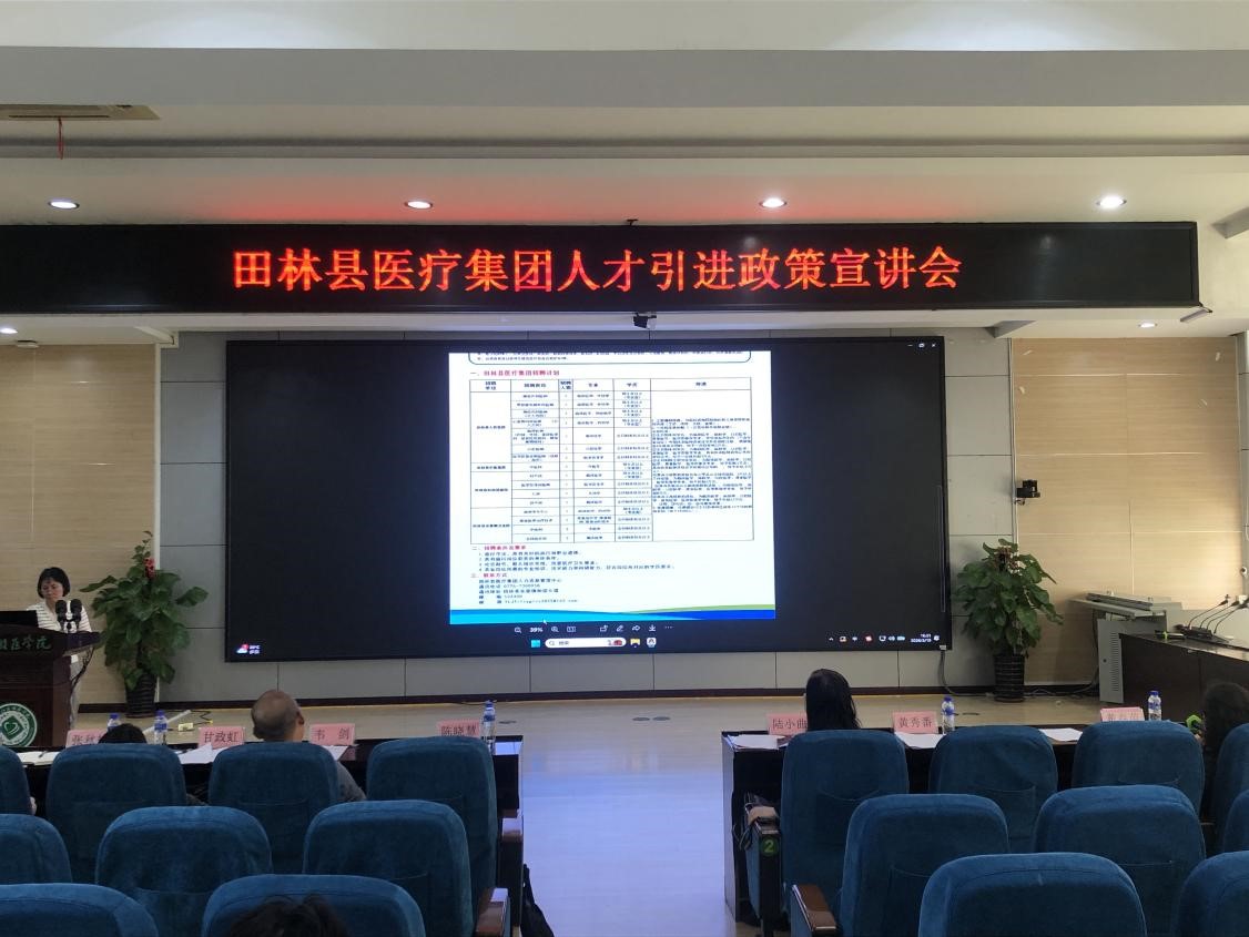 活动中,全体人员共同观看田林县宣传片,县医疗集团、县人社局相关负责人详细解读招聘岗位、薪资待遇、编制保障、安家补贴、进修晋升等核心政策,并逐一回应解答毕业生关于岗位资格、住宿保障、职称评聘、职业发展等热点问题,现场交流氛围热烈。