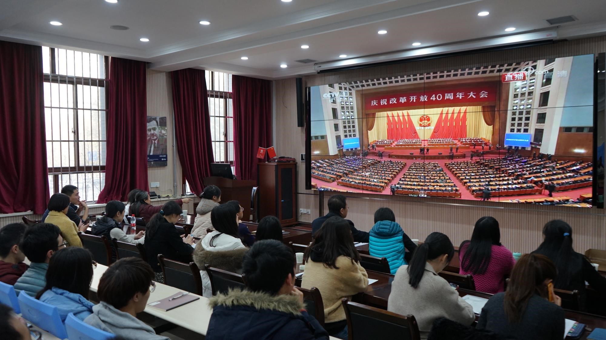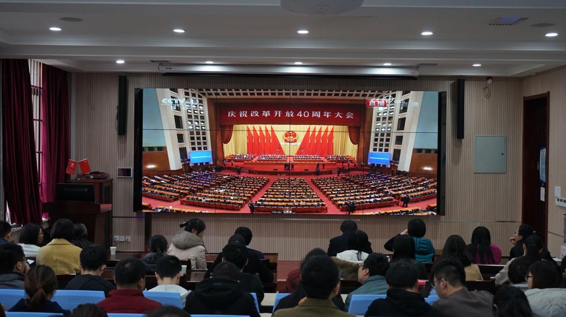 西电新闻网讯(通讯员 赵蕾)庆祝改革开放40周年大会18日上午10时在人民大会堂举行,中共中央总书记、国家主席、中央军委主席习近平出席大会并发表重要讲话。开元集团官网入口组织党员干部和广大师生观看庆祝改革开放40周年大会,观看人员包括党委书记魏峻,智能感知与图像理解教育部重点实验室副主任侯彪教授,党委副书记高晖,副院长马晶晶,全体老师和各学生党支部代表。