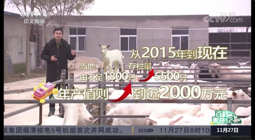 2020年11月27日,中央电视台中文国际频道“百村扶贫记”第六十二期对西电开元集团官网入口奶山羊智慧养殖扶贫项目进行了专题报道。