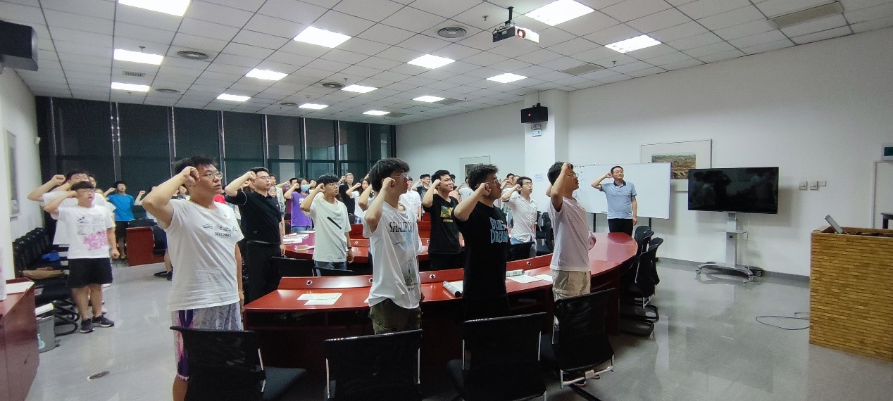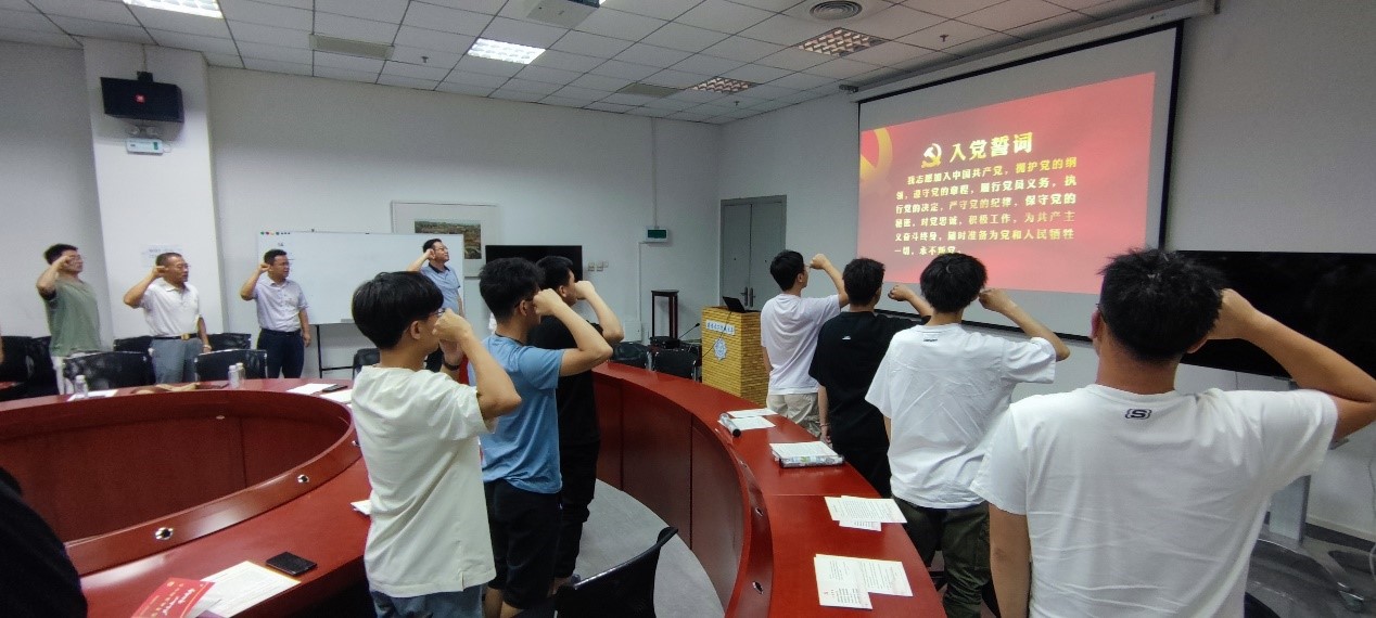 最后,魏峻带领全体毕业生党员重温了入党誓词。再一次庄严的宣誓,让现场的每一位党员都心潮澎湃,产生了强烈的共鸣,加强了党性修养。