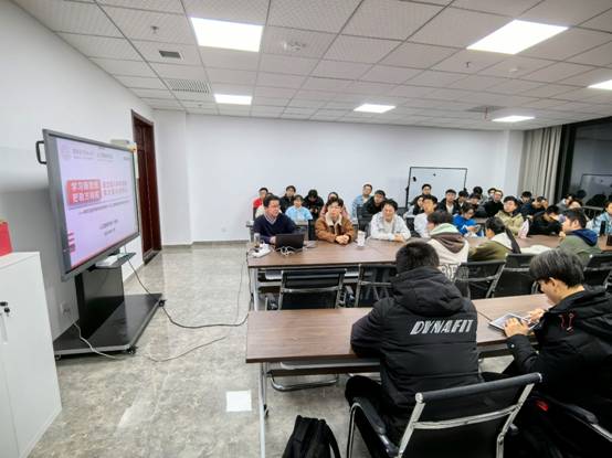 党委副书记、纪委书记高晖以“头雁奋飞--学习习近平总书记关于新一代人工智能健康发展的重要讲话”为主题作了报告。他细致解读了以智明志、以智提质、以智图治、以智谋祉以及以智明秩五个方面,阐述了人工智能在产业升级、社会治理和民生福祉等领域的重要作用。同时,他提到了习近平总书记对于人工智能发展的支持,并介绍了国务院新一代人工智能发展规划的主要内容。他强调,要坚持党的领导,保证人工智能发展的正确政治方向,心怀家国,牢记使命。他号召智能学子担负起发展人工智能的光荣使命,不断拓宽视野,把握青春,在实现社会主义伟大理想的征程中贡献自己的力量,并用“青春因磨砺而出彩,人生因奋斗而升华”作为结语,激励同学们勇闯专业领域的“无人区”,为国家的发展做出更大的贡献。
