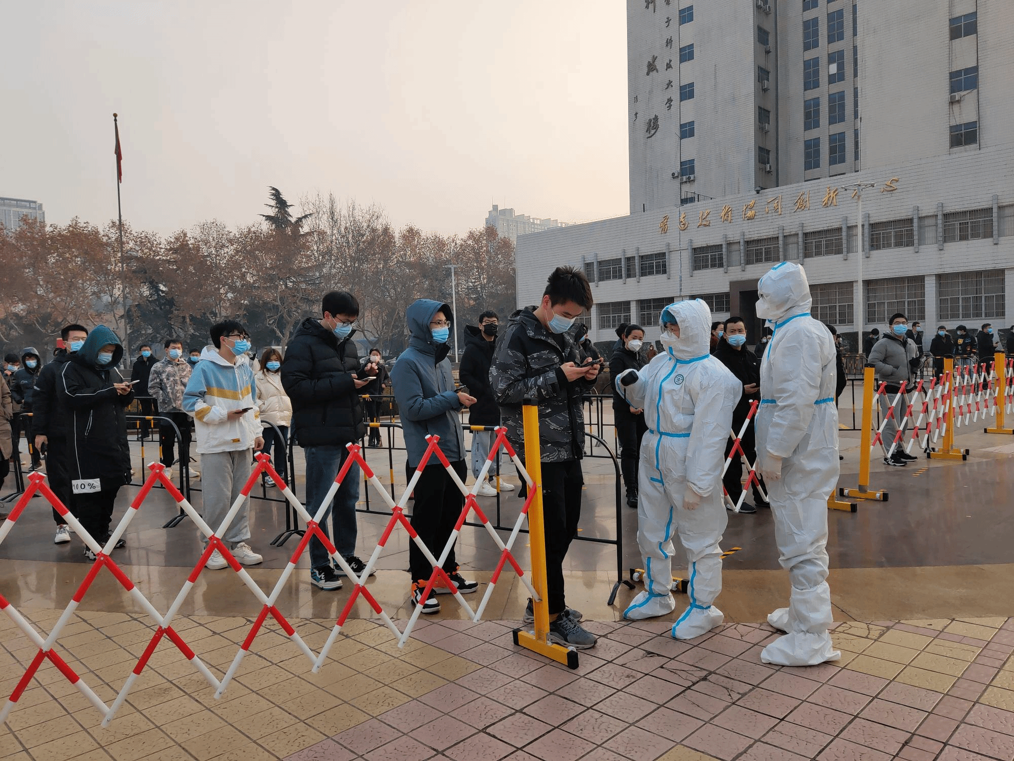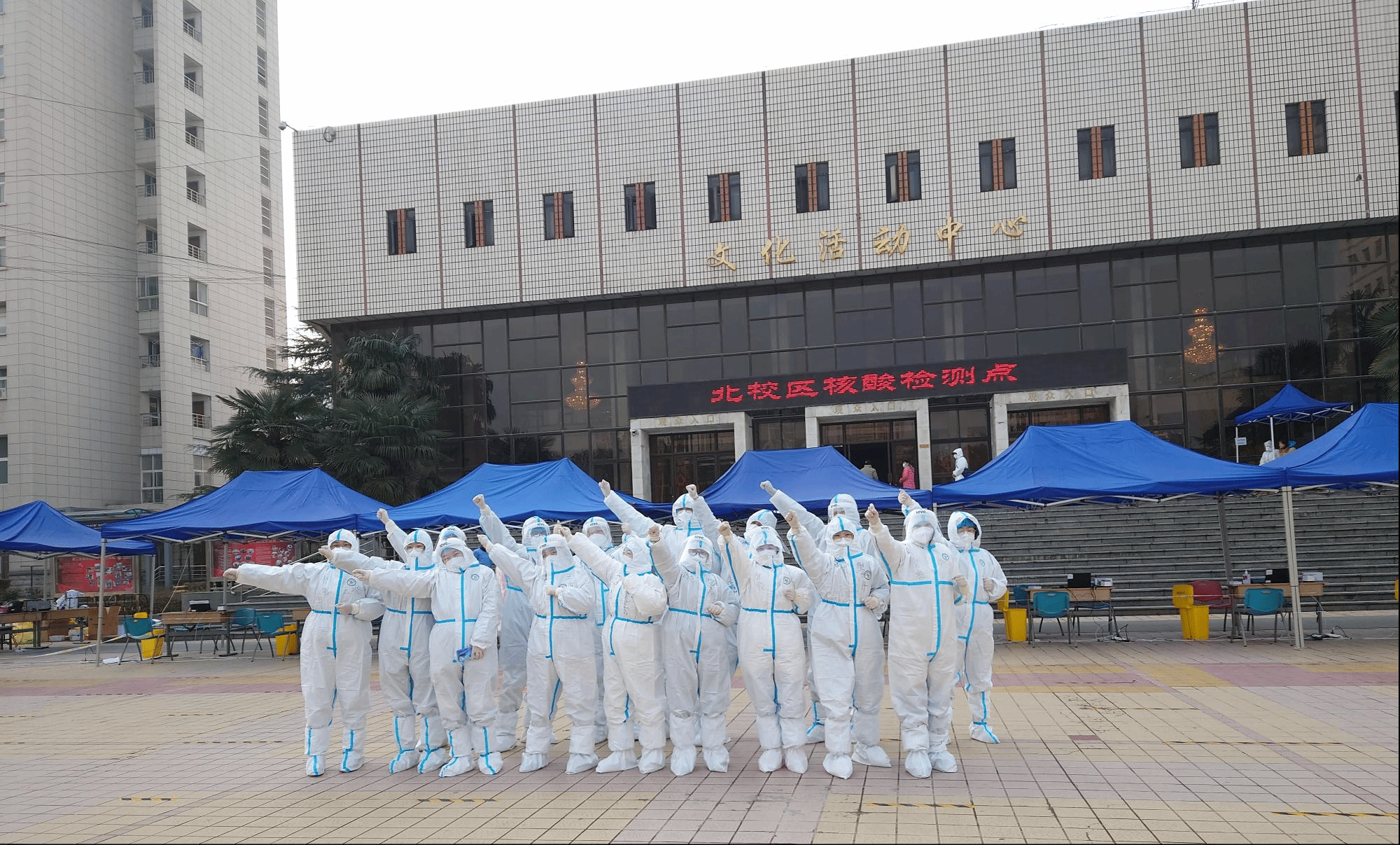 支部志愿者们各个闻令而动,各司其职,不喊苦不喊累,丝毫不畏风险。核酸检测志愿者,按照安排与医生互相协作,圆满完成北校区核酸检测任务;物资供应点志愿者,循环走动,不断提醒排队同学保持一米间隔;食堂志愿者,喇叭播报与口头提醒相结合,在食堂内不断巡查,提醒买饭的同学保持一米间隔,将食堂秩序维护地井然有序。