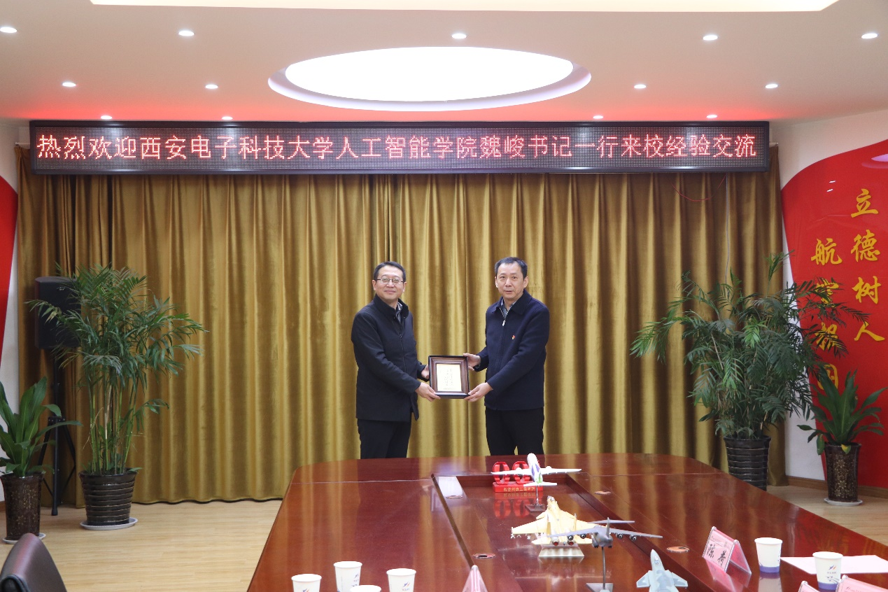 最后,与会人员就高质量开展党建工作进行了交流,共同探索党建工作新模式,并就进一步开展党建结对共建工作进行了展望。魏峻向航空制造工程学院送上了西电特色文化纪念品。