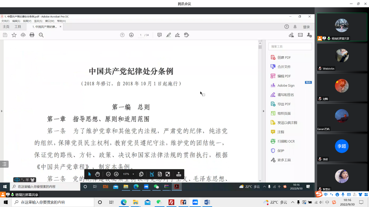 博士第一党支部通过线上线下的方式开展“严守纪律规矩加强作风建设”专题研讨会,学习《党员干部纪律教育学习读本》,观看纪律教育公开课,进行主题讨论和发言,在研讨交流中凝聚思想共识,坚定理想信念,增强政治定力,提高廉洁自律意识。围绕党规党纪教育,组织支部全体党员在线上参加了党纪法规知识测试考试。此次活动让党员们更加深刻地认识和了解了党纪法规知识,同时充分检验了党员们的学习成效,营造了以考促学、以考促廉的浓厚氛围,强化了党纪法规意识。在前期学习的基础上,博士第一党支部组织召开了以“严守纪律规矩加强作风建设”为主题的专题组织生活会,党员结合集体学习、个人自学、党规党纪知识测试和警示教育活动的收获、结合岗位职责和履职尽责等个人实际情况,谈认识、谈体会,仔细查摆问题,深刻剖析原因,主动开展批评与自我批评,就存在的问题提出努力方向和整改措施,进一步纠作风、改作风、转作风,为学院的各项事业发展敢拼敢闯、勇挑重担,从不同角度贡献自己的力量。