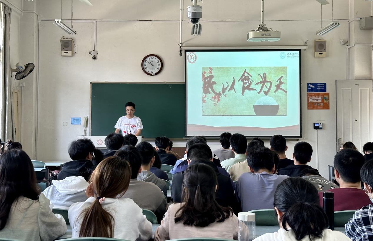 随后,大学生党史校史宣讲团成员章宏以《科技创新促发展,核心技术牢把握》为题进行了党史宣讲。科技是第一生产力,人才是第一资源,创新是第一动力,他首先与大家分享了众多优秀人物的科技攻关故事,如“世界菌草技术之父”的林占禧教授,向旱作水稻要口粮的朱有勇院士,随后结合习近平总书记关于人工智能产业发展的重要讲话精神,倡导大家“主动承担时代赋予我们的使命和责任,以理想者、担当者、吃苦者、奋斗者的昂扬风貌,激荡起民族复兴的澎湃春潮,用青春的智慧和汗水打拼出一个更加美好的中国。”