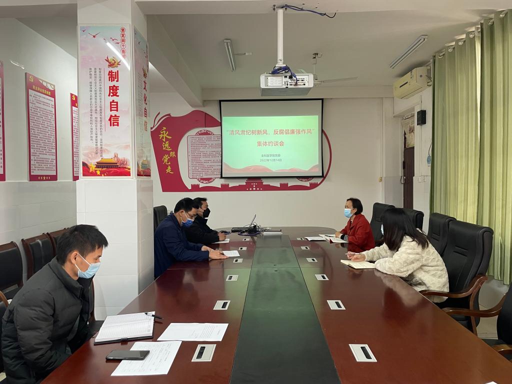 为推进清廉学校建设工作有效落实,强化学院党风廉政建设,端正学院工作作风,提升学院教师廉洁自律意识,12月14日,全科医学院党委于209党员活动室开展“清风肃纪树新风,反腐倡廉强作风”集体约谈会,会议由学院党委书记莫小强主持。