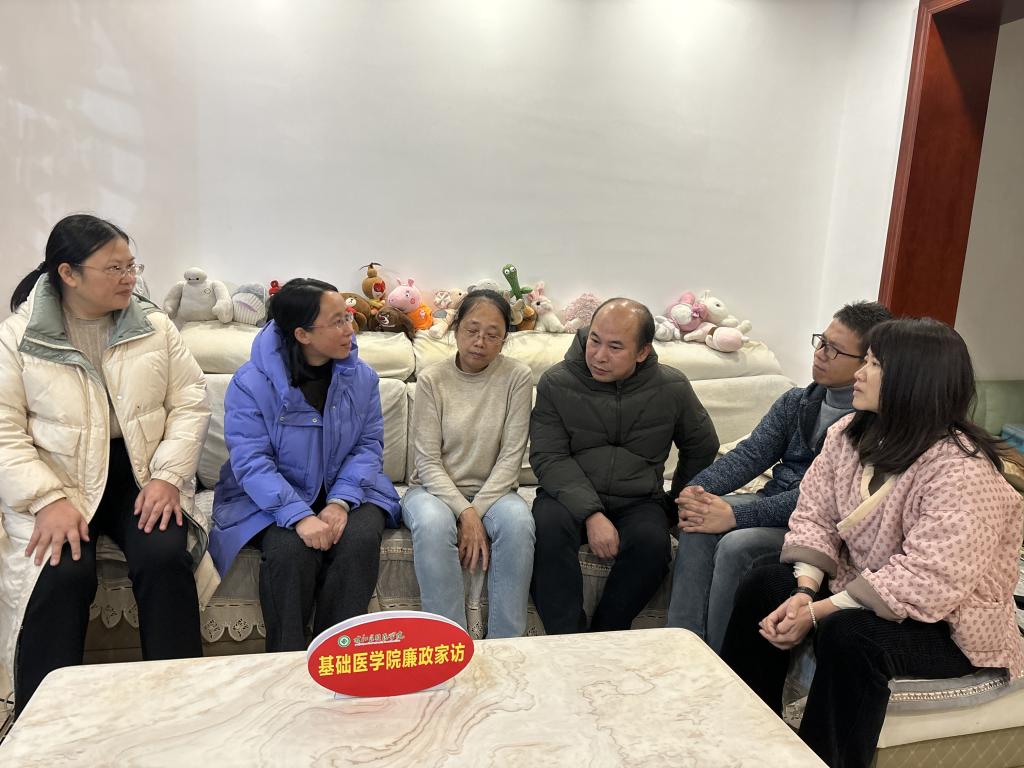 长期以来,基础医学院党委坚持“严”的主基调。廉洁家访活动是全面推进清廉校园建设的有力举措,加强对教师“八小时”之外生活情况监督的有力举措,强调了以清朗家风涵养清廉作风要求,为推动开云官网“清风满右医”工作打下坚实基础,引导教职工及家属培育优良家风,筑牢家庭防线“安全网”。