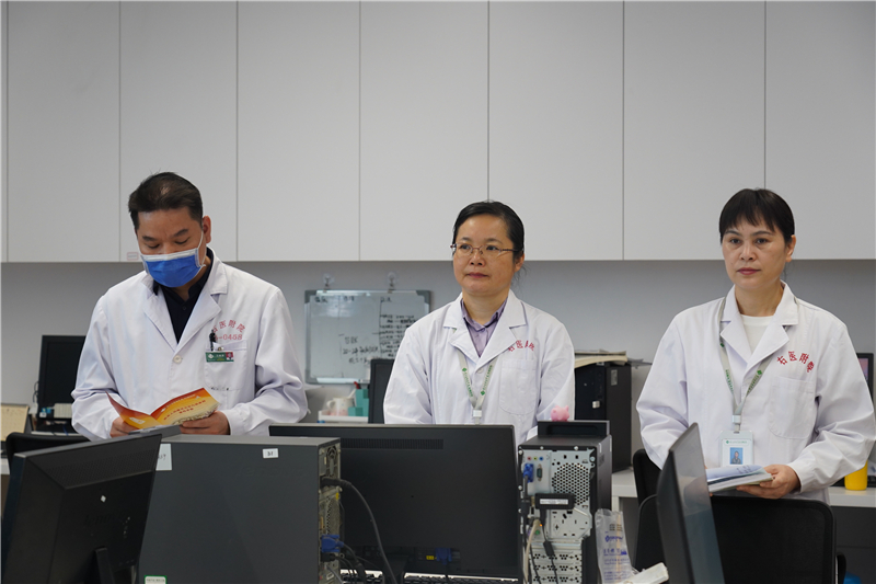 查房伊始,右医附院康复医学科护士长黄建源首先组织科室全体医护人员共同学习《医务人员廉洁从业九项准则》,重温廉洁从业的九项准则内容并将其铭记于心,落实相关条例要求。梁楚晗纪委书记带领康复医学科全体医护人员共同观看警示教育片和开展现场督查工作,通过学习和分析典型案例,以案为鉴,深入剖析问题产生的根源、危害及影响。