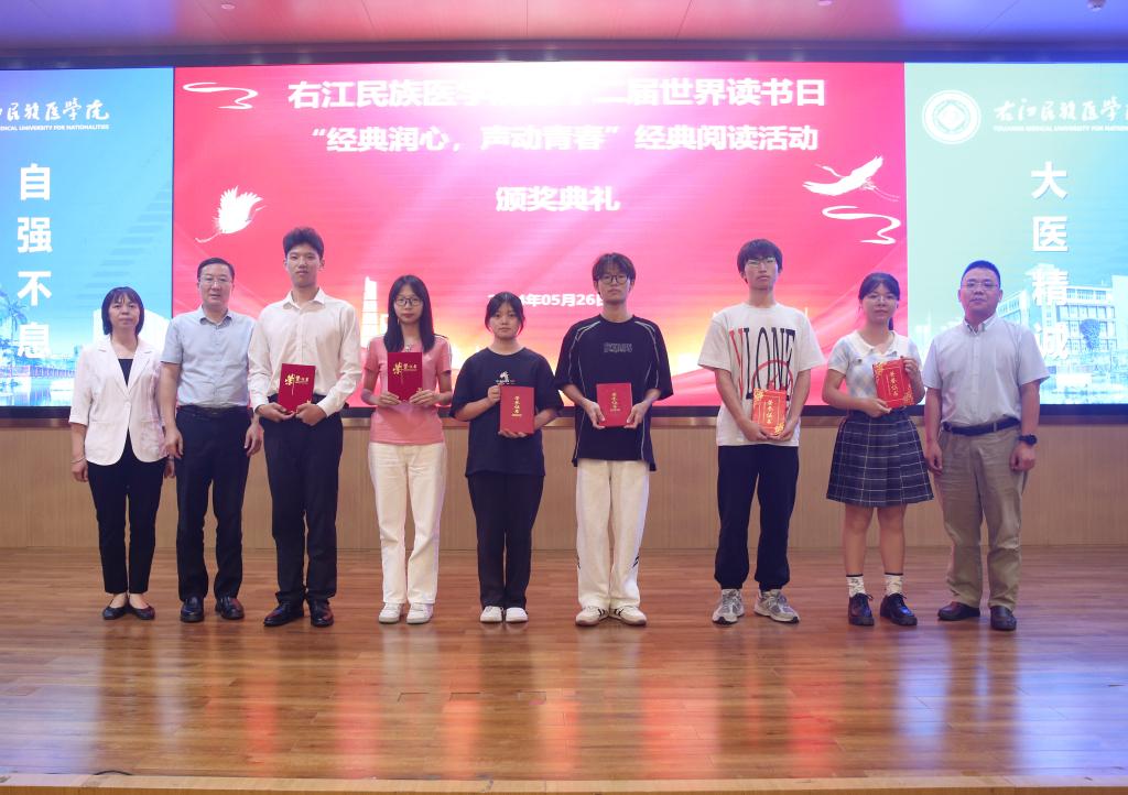 与会领导为“经典润心,声动青春”经典阅读活动获奖选手颁奖。