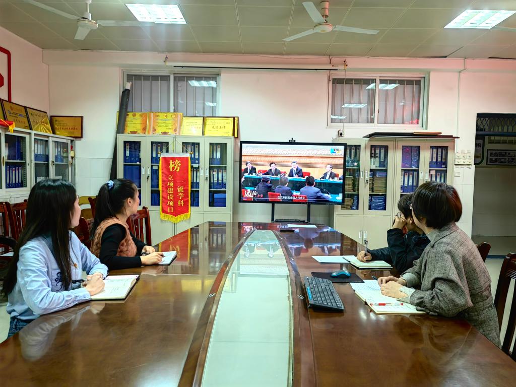集体研讨时,张文玲就第十四届全国人民代表大会第三次会议上李强总理所作的政府工作报告精神进行中心发言,郭蕊、唐春娥、何林娜结合学院工作实际,分别就学科建设、人才培养和学生就业作交流发言。