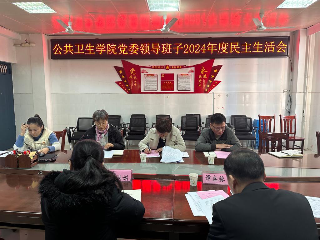 1月14日上午,公共卫生学院党委召开领导班子2024年度民主生活会。学校党委常委、副校长谭盛葵,组织部副部长廖满媚到会指导。公共卫生学院领导班子参加会议,专职组织员、党支部书记代表、专任教师代表列席会议,民主生活会由张文玲书记主持。