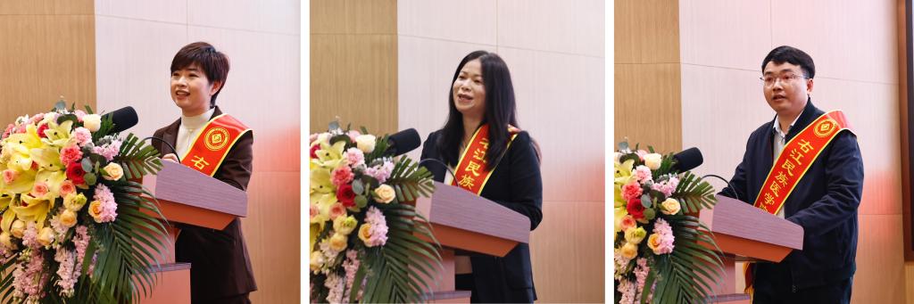 第三届“师德典范”代表麻新灵、邓敏、钟斌分享育人故事。