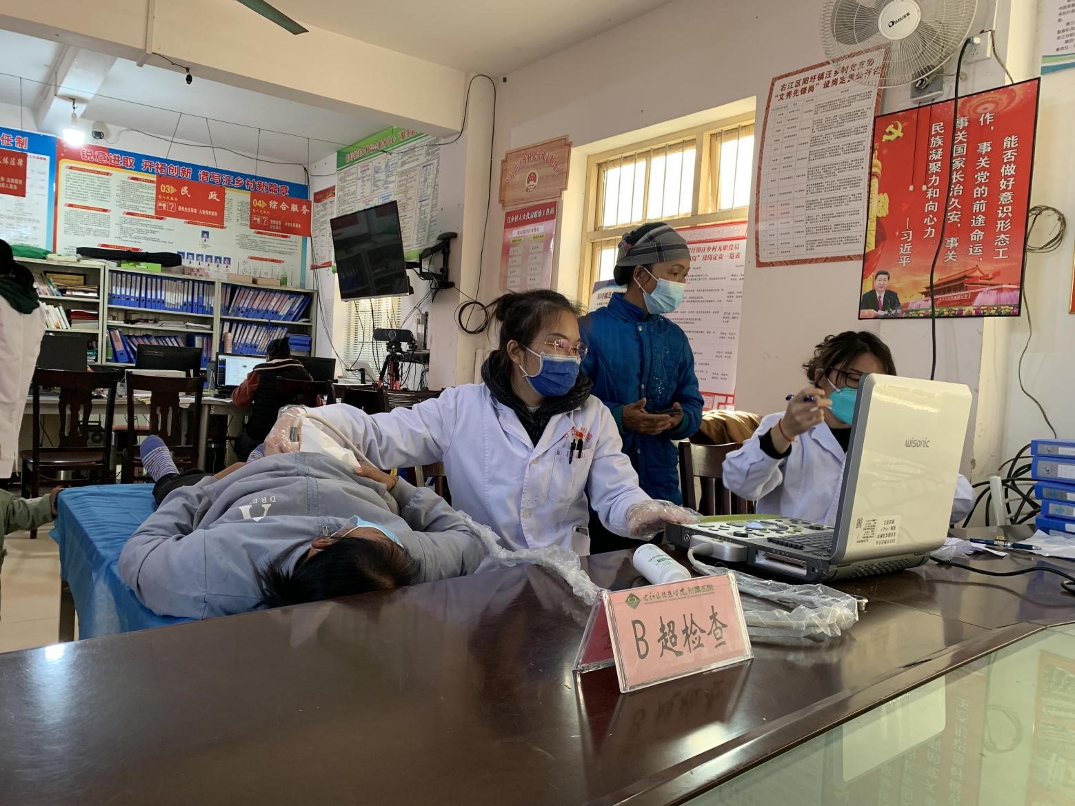 上午,两个党支部的党员同志组建健康服务团队,深入阳圩镇汪乡村村卫生所开展义诊、健康咨询、健康检查等多种形式的社会服务活动。活动现场,党员专家分不同的医疗小组详细询问群众病史、了解病情,现场为群众体格检查、测血压、测血糖及做B超等,对群众咨询的健康问题进行详细地讲解,对日常保健、常见病、多发病的预防进行耐心指导,从不同专业角度全方位宣传相关医疗政策与常识,提升村民健康意识,切实将健康服务送到群众身边,让他们在“家门口”就享受到优质便捷的医疗服务。